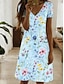 Damskie Sukienka do kolan Codzienne sukienki Sukienka w kwiatki Letnie sukienki Elegancja Moda Nowoczesny Na zewnątrz Urlop Wyjściowe Regularny Kwiaty Krótki rękaw W serek Niebieski Lato Wiosna