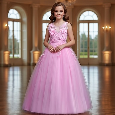Dziewczyny ' 3D Jednokolorowe Sukienka na imprezę Bez rękawów Lato Spektakl Impreza Urodziny Księżniczka Piękny Słodkie Dzieci 4-12 lat Sukienka na imprezę Maxi Regularny