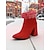 Damskie czerwone botki zapinane na suwak – stylowe botki ze sztucznej skóry na blokowym obcasie, idealne na święta, na co dzień i do pracy