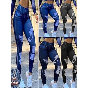 Damskie Jeansy Getry Jegginsy Moda miejska Codzienny Pełna długość Średia talia Równina Kieszeń Podarte Wygodne Średnio elastyczny Codzienny Na zewnątrz Urlop Niebieski Czarny popielaty Wiosna Jesień