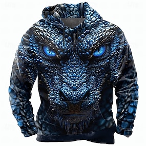Męskie Smok 3D Bluzy Bluza dresowa Długi rękaw Podkoszulek Półgolf Codzienny Punk i gotyk Impreza Streetwear 3D Na każdy sezon