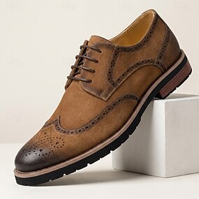 męskie brązowe buty wizytowe typu brogsy z noskiem wingtip, klasyczne sznurowane, biznesowe, formalne oksfordy dla dojrzałych mężczyzn, do biura, na wesela, bankiety i eleganckie, codzienne wydarzenia