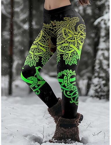 Spodnie Boho Wikingów dla kobiet Legginsy Przytulne Legginsy Wakacje Wintage Streetwear Pełna Długość Naturalna Graficzna Elastyczny Pas Druk Wygodny Komfortowy Wysoka Elastyczność Wakacyjny