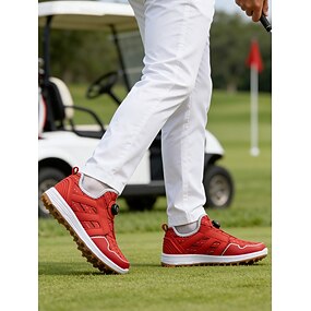 męskie czerwone buty golfowe, lekka, przewiewna cholewka, amortyzująca podeszwa, sportowy styl na pola golfowe i do uprawiania sportów na świeżym powietrzu