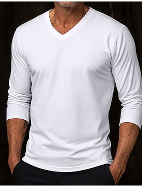 Męskie Podkoszulek Długi rękaw W serek Zima Wiosna i jesień Na każdy sezon Jednokolorowe Dzianina Codzienny Odzież sportowa Gładkie Codzienny Na zewnątrz Casual Biały Czarny Ciemnoszary Top Tee dla