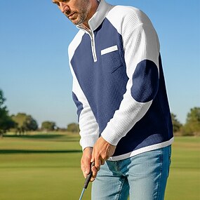 Męskie Koszulki polo waflowe Teksturowany Codzienny Ulica Wieczorne Długi rękaw Moda Wypoczynek Kolorowy blok Zapiąć na zamek błyskawiczny Niejednolita całość Jesień Wiosna i jesień Na każdy sezon