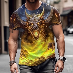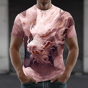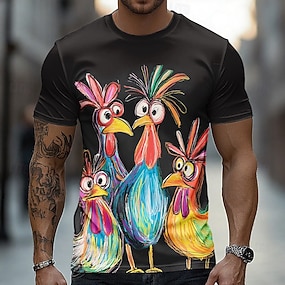 Męskie Zwierzę 3D Podkoszulek Krótki rękaw Podkoszulek Okrągły dekolt Koszula Moda miejska Przesadny Codzienny Święto Tęczowy Odzież S M L XL 2XL 3XL