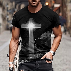 Męski T-shirt Krzyżowców Krzyż rycerzy Templiarzy Zbroja Boga Krótkie rękawy Koszulka 3D Wydruk Okrągły dekolt Koszulka Moda Religijna Sportowa Na świeżym powietrzu Czarny Zielony Lato Wiosna Odzież