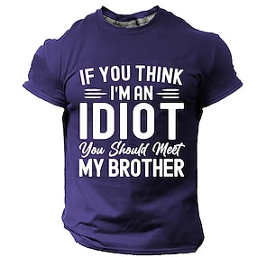 Facetów zabawna koszulka Jeśli myślisz że jestem idiotą powinieneś poznać mojego brata - krótki rękaw graficzny T-shirt humor rodzinny
