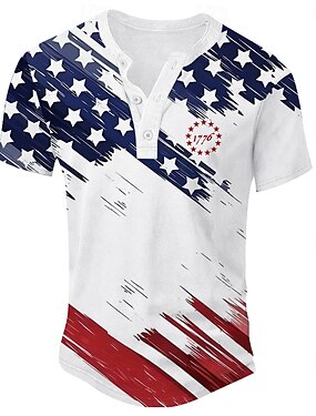 4 lipca 2026 250. rocznica Dnia Pamięci Męska Koszulka z grafiką Flagi USA Henley rękaw krótki Codzienna Sporty na świeżym powietrzu Ulica