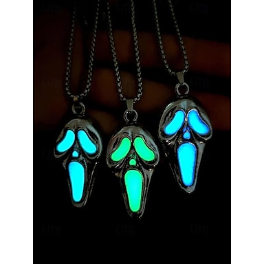 Męski naszyjnik z wisiorkiem w kształcie twarzy ducha świecący w ciemności – biżuteria w stylu horroru na imprezy kostiumowe i wieczorne wydarzenia