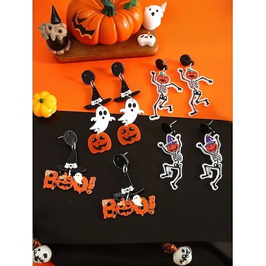 zestaw akrylowych kolczyków na Halloween dla kobiet - lekki duch, dynia, kapelusz czarownicy &wzory szkieletów dla nastolatków i dorosłych, idealne na kostiumy na Halloween i dodatki na imprezy