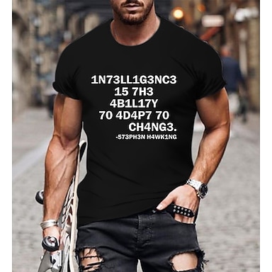 Męska koszulka z krótkim rękawem z grafiką z cytatem Stephena Hawkinga 'Inteligencja to umiejętność przystosowania się do zmian'