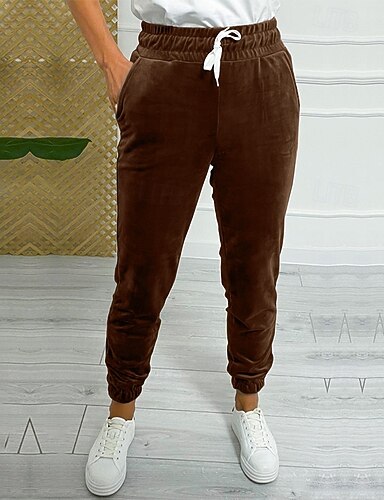 Damskie Spodnie dresowe Spodnie polarowe Spodnie Spodnie do biegania Urlop Zabytkowe Moda Pełna długość Wysoka talia Równina Ściągana na sznurek Kieszeń Sportowy Komfort Ciepłe Miękka Średnio