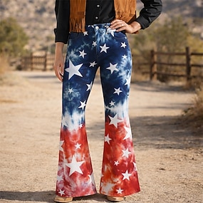 250. rocznica USA Retro / vintage 1970 Spodnie Spodnie z szerokimi nogawkami Hipisowskie Dyskoteka Wysoka talia Strój na bal maskowy Damskie Bal maskowy 4 lipca Impreza Dzień Niepodległości Dla