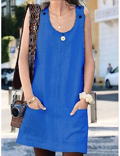 Damskie Sukienka mini Letnie sukienki Sukienka na ramiączkach Codzienny Codzienny Luźna Jednokolorowe Bez rękawów Dekolt w kształcie litery U Fuksja Ciemnoniebieski Lato