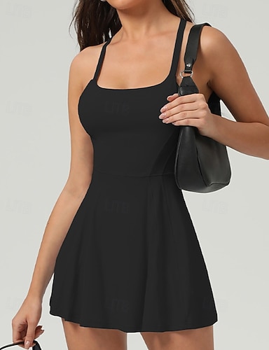 Damskie Solidne kolory Sukienka do tenisa z wbudowanymi spodenkami i biustonoszem Sukienka sportowa Bez rękawów Odkryte plecy Szybkie wysychanie Bransoletka tenisowa Golf Pikle Okrągły dekolt Czarny