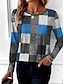 Damskie Podkoszulek Graficzny Geometryczny Abstrakcja Zabytkowe Elegancki Klasyczny Długi rękaw W serek Zwykłe topy Codzienny Z wycięciem Nadruk Niebieski Wiosna Jesień