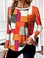 Damskie Podkoszulek Graficzny Geometryczny Zabytkowe Elegancki Nowoczesny Długi rękaw W serek Zwykłe topy Codzienny Z wycięciem Nadruk Niebieski Fioletowy Zielony Wiosna Jesień