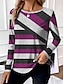 Damska koszulka T-shirt z okrągłym dekoltem długim rękawem tunika graficzna geometryczna w paski vintage stylowa regularne topy codzienny nadruk biały różowy niebieski fioletowy jesień