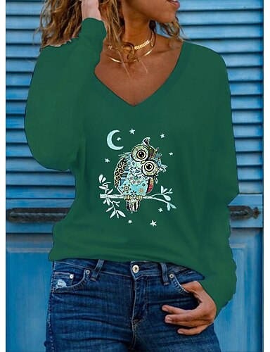 Damskie Bluzka Codzienny Elegancki Długi rękaw W serek Zwykłe topy Codzienny Święto Wyjściowe Z wycięciem Nadruk Czarny Niebieski Fioletowy Lato Wiosna
