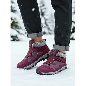Damskie zimowe buty trekkingowe – wygodne buty sportowe do chodzenia na świeżym powietrzu z paskami na rzepy, podszewką z polaru i wytrzymałą, antypoślizgową podeszwą, idealne na śnieg, zimowe przygody i codzienne aktywności na świeżym powietrzu