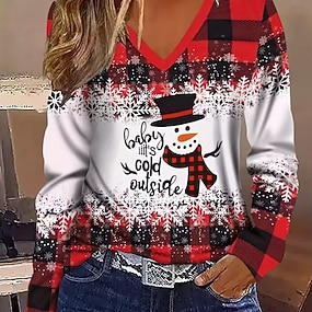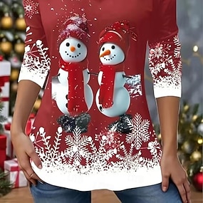 Święta Damskie Podkoszulek Guziki Nadruk Asymetryczny/a Graficzny Bałwan Płatek śniegu Elegancki Codzienny Długi rękaw W serek Zwykłe topy Codzienny Niebieski Biały Żółty Wino Czerwony Jesień Zima