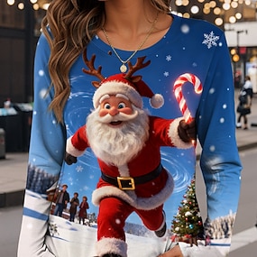 Świąteczny sweter dla kobiet - pulower codzienny casualowy graficzny z Mikołajem ribbed klasyczny dekolt dzianinowy z nadrukiem z długim rękawem regularne topy na zewnątrz na weekend w kolorze