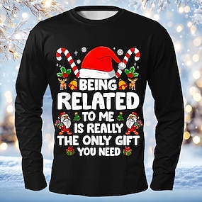 Święta Męskie Święty Mikołaj Śmieszne Podkoszulek Długi rękaw Podkoszulek Druk 3D Półgolf Koszula Moda Podstawowy 3D Ulica Codzienny Niebieski Czarny Zielony Lato Wiosna Odzież S M L XL XXL 2XL XXL