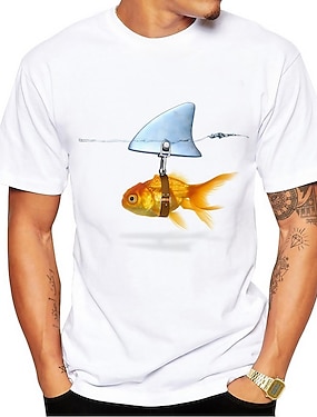 Męska koszulka graficzna śmieszny wzór z płetwą rekina złotej rybki