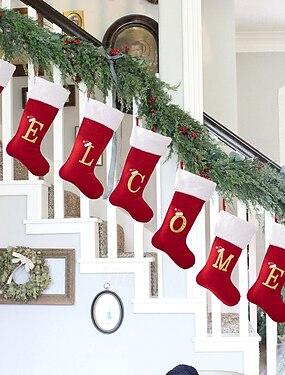 spersonalizowana skarpeta świąteczna z literą, czerwona wysokiej jakości aksamitna skarpeta z literą, skarpeta świąteczna z imieniem DIY, skarpeta prezentowa dla mamy na Boże Narodzenie