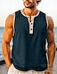 Męskie Koszula Henley Kamizelka Top Podkoszulek lniany Bez rękawów Henley Lato Równina Moda Designerskie Artystyczny Guziki Raw Edge Codzienny Urlop Wyjściowe Biały Rumiany róż Granatowy Top Tee dla