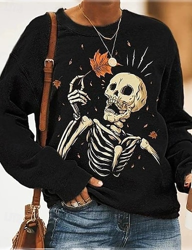 Damskie Bluza z kapturem Graficzny Czaszka Halloween Aktywny Moda Moda miejska Długi rękaw Półgolf Okrągły dekolt Zwykłe topy Ulica Na co dzień Codzienny Nadruk Czarny Jesień Zima