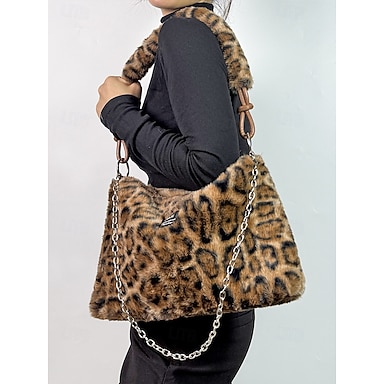 Damska torba na ramię ze sztucznego futra, wielokolorowa, uniwersalna, z modnym paskiem na łańcuszku, idealna na co dzień i na imprezę