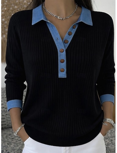 Damskie Sweter Elegancja Zabytkowe Podstawowy Wieczorne Kołnierzyk koszuli Niejednolita całość Długi rękaw Zwykłe topy Robić na drutach Na zewnątrz Streetwear Czerwone wino Rumiany róż Jesień Zima