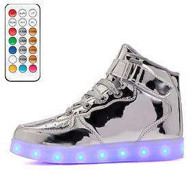 złote, podświetlane diodami LED wysokie trampki dla dzieci i mężczyzn z kolorową podeszwą, regulowanym paskiem i błyszczącym wykończeniem
