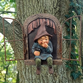 Mini ogród rzemiosło dekoracyjne krasnal zostaw okno kapryśne drzewo rzeźba dekoracja ogrodowa krasnal ogrodowy ozdoba na zewnątrz!