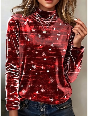 Święta Damskie Tunika Koszulki Nadruk Graficzny Groszki Płatek śniegu Elegancja Zabytkowe Moda Długi rękaw Golf Zwykłe topy Codzienny Wyjściowe Weekend Niebieski Żółty Czerwony Zielony Zima