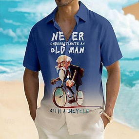 Nigdy nie lekceważ staruszka z rowerem. Męska, zabawna koszulka z motywem kolarza, karykaturą 3D, krótkim rękawem, okrągłym dekoltem, turkusowym gradientem, swobodna koszulka na prezent. Rozmiar: S,