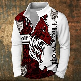 Męskie Zwierzę Wilk Bluzy Sport Moda Codzienny Długi rękaw Suwak Dom Impreza Praca Streetwear Biały Jesień Na każdy sezon Projektant S M L XL XXL XXXL