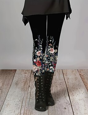 Damskie Spodnie Getry Przytulne legginsy Moda miejska Codzienny Pełna długość Wysoka talia Kwiaty Elastyczny pas Nadruk Oddychalność Wygodny Elastyczny Urlop Ulica Dzienne zużycie Niebieski Lato