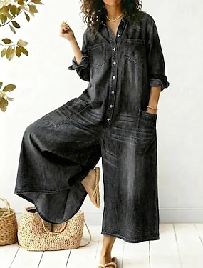 Damskie Normalny Kombinezon Moda miejska Jednokolorowe Krótki rękaw Kołnierzyk koszuli Kieszeń Ściągana na sznurek Ulica Codzienny Regularny Czarny Biały Wino Lato