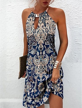 Damskie Sukienka maxi Codzienne sukienki Sukienka A line Sukienka na ramiączkach Sukienka z nadrukiem Zabytkowe Retro Codzienny Codzienny Na zewnątrz Randka Regularny Geometryczny Plemienny Bez