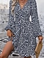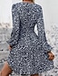 Damskie Sukienka mini Sukienka w kwiatki Sukienka z nadrukiem Klasyczny Nowoczesny Codzienny Święto Wyjściowe Regularny Równina Długi rękaw W serek Niebieski Czarny Wiosna Jesień