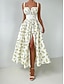 Damskie Sukienka midi Sukienka Boho Codzienne sukienki Letnie sukienki Moda Nowoczesny Codzienny Plaża Weekend Regularny Kwiat Bez rękawów W serek Biały Lato Wiosna