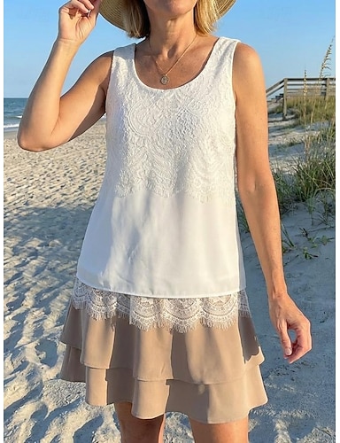 Damskie Sukienka mini Biała sukienka Koronkowa sukienka Sukienka letnia Codzienny Urlop Ulica Święto Regularny Bez rękawów Półgolf Biały Lato