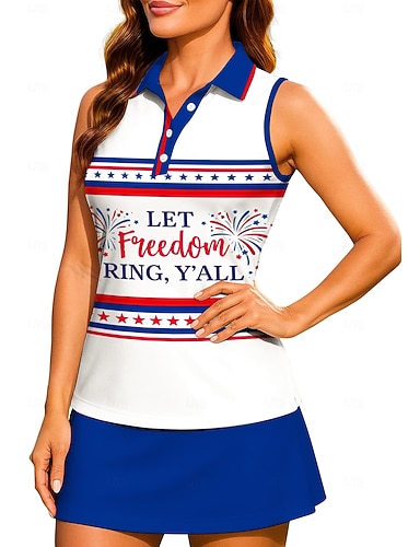 250. rocznica powstania Ameryki Dzień Niepodległości Damskie Geometryczny Gwiazdki Flagi Koszulka sportowa Koszulka polo Bezrękawnik Koszulka tenisowa Bez rękawów Guziki UPF50+ Ochrona UV Oddychający