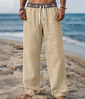 Męskie Lniane spodnie Spodnie Letnie spodnie Spodnie plażowe Ściągana na sznurek Niejednolita całość Elastyczny pas Geometryczny Komfort Oddychający Pełna długość Codzienny Święto Urlop Moda Zielony
