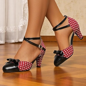 Damskie lakierowane buty na obcasie z lat 50. z imitacji skóry, z paskiem w kształcie litery T i ozdobnym kokardką, wygodne, masywne, klockowe obcasy, eleganckie na imprezy, wesela i specjalne okazje