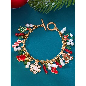 Damska bransoletka z zawieszkami świątecznymi, w kolorze złota, z motywem Świętego Mikołaja, bałwanka, pierników i ozdób świątecznych, idealny prezent na Boże Narodzenie